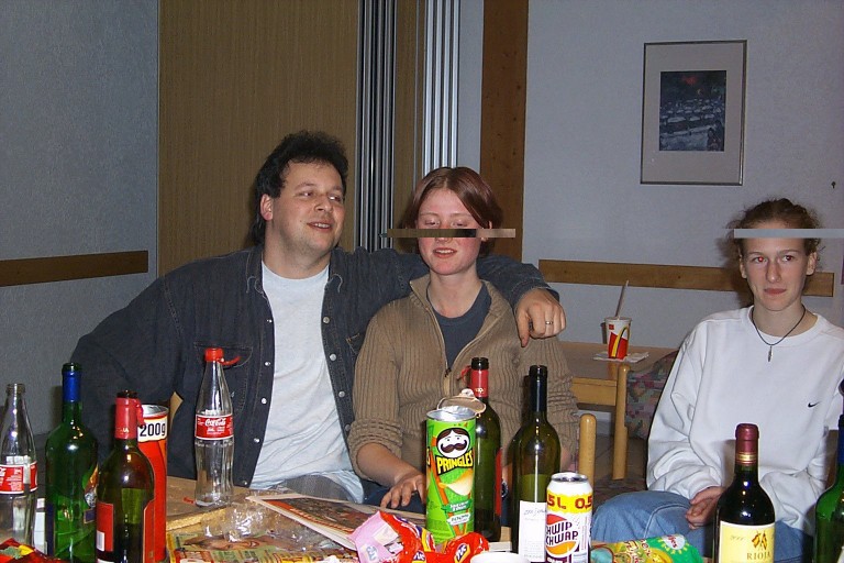 Also dem etwas starren Gesichtsausdruck des mittleren Herrn zu entnehmen, müßte mindestens eins der Mädels ein paar Schlangen auf dem Kopf haben...vielleicht hats ihm aber auch zu sehr vor den Teletubbies gegraut...