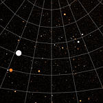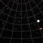 ![]() RA 10h, DE 45N (top left corner: 14h 60N, top right corner: 6h 60N) Again two stars belonging to the Sagittarius constellation: the white epsilon and the red eta, both at 43 ly distance.